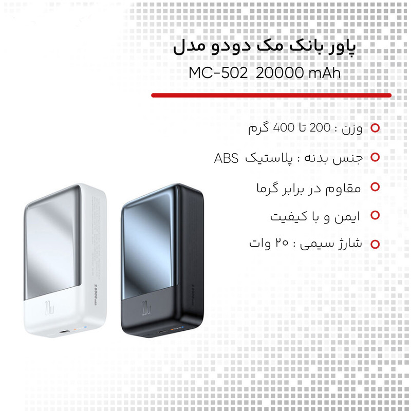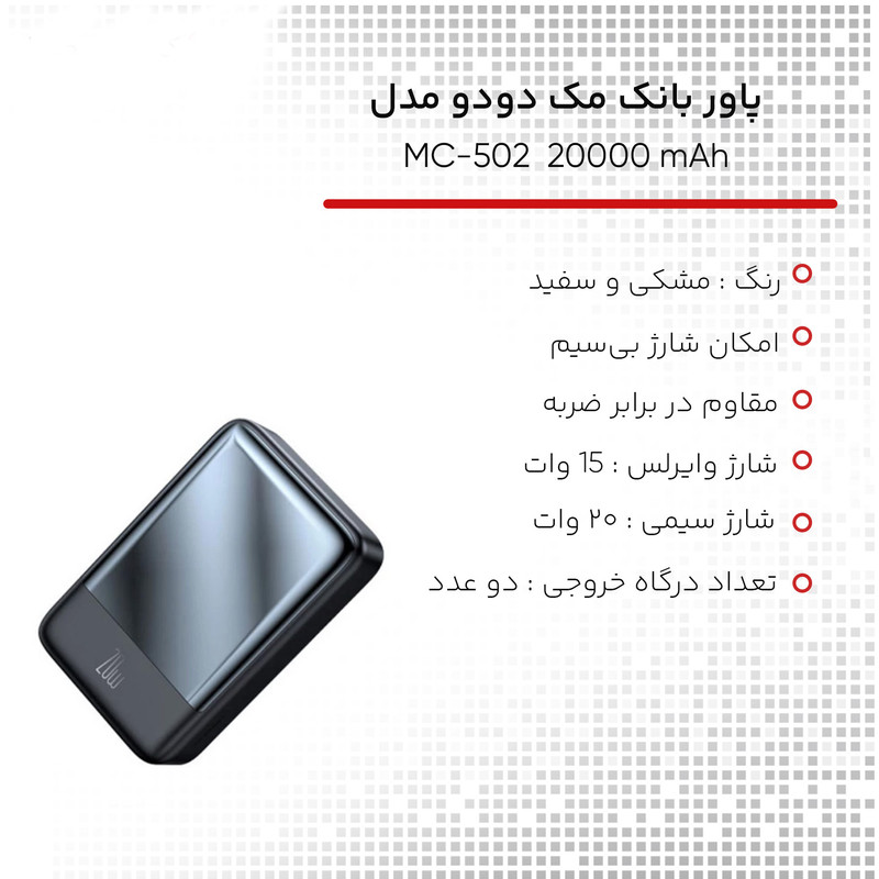 پاوربانک مک دودو مدل MC-502 ظرفیت 20000 میلی آمپر ساعت