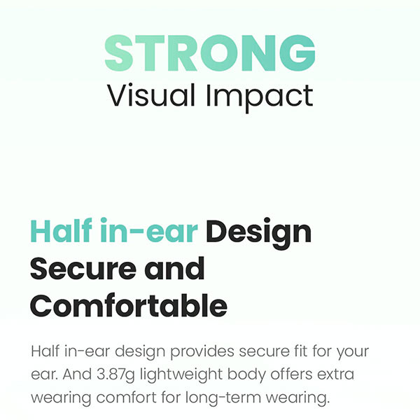 طراحی ایرفون های هندزفری بلوتوث Haylou X1 Neo به صورتSemi In-Ear است که به شکل کامل درون گوش جای میگیرند و به محض اینکه آنها را درون گوش خود میکذارید، کم شدن نویز و صداهای اضافی محیط را متوجه میشوید. وزن 3.87 گرمی هر هندزفری را نیز در نظر بگیرید که در مجموع باعث شده تا در طولانی مدت امکان استفاده از آن را داشته باشید و کمتر خسته شوید.