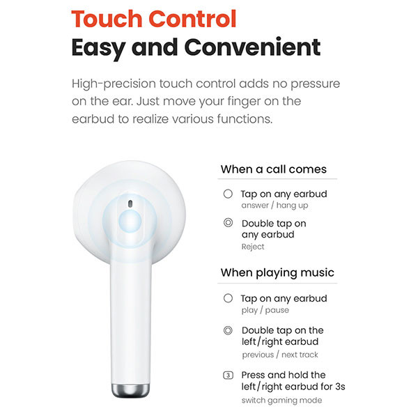 هندزفری هایلو X1 Neo دارای قابلیت تاخیر کم بوده که این هندزفری را برای بازی کردن و فیلم دیدن مناسبتر میسازد. برای فعال سازی این حالت کافی است پنل لمسی هندزفری سمت راست را لمس کرده و به مدت 3 ثانیه نگه دارید.