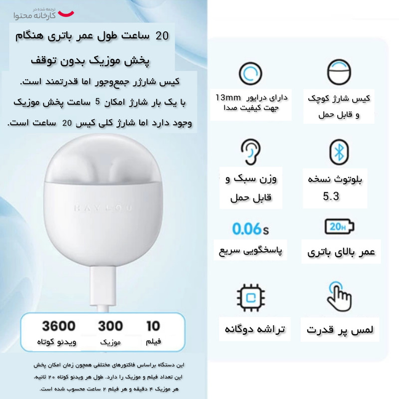 اگر گوشی شما نیز دارای نسخه 5.3 بلوتوث باشد، باتری استفاده شده از هندزفری و گوشی، کمتر خواهد بود. این ویژگی تنها زمانی رخ خواهد داد که گوشی نیز دارای نسخه 5.3 بلوتوث باشد.